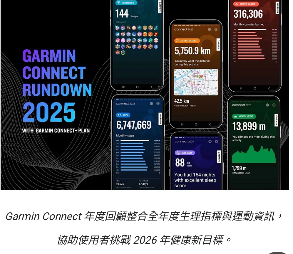 文@戶外探索 智慧穿戴領導品牌Garmin發佈「2025GarminConnect年度數據回顧」報告,透過全球數百萬用戶的去識別